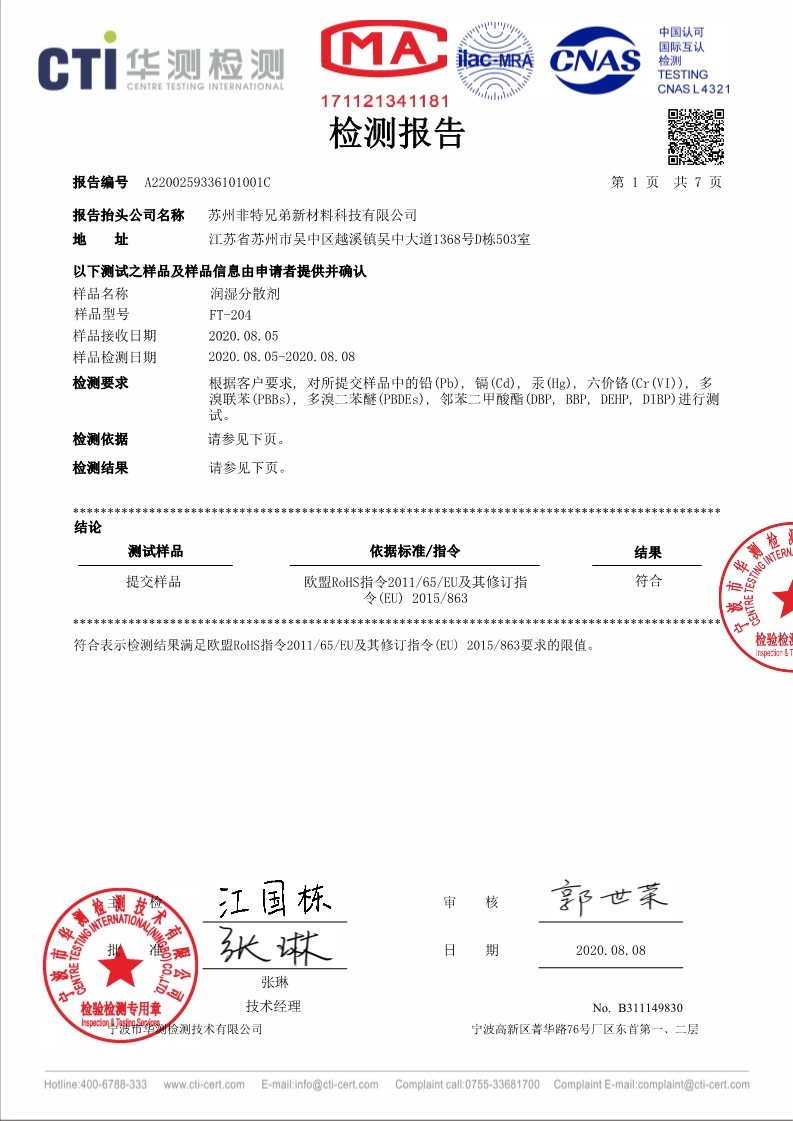 蘇州非特兄弟新材料科技有限公司.聚氨酯潤濕分散劑、聚氨酯消泡劑、聚氨酯潛固化劑、聚氨酯抗老化劑、聚氨酯耐水解促進劑